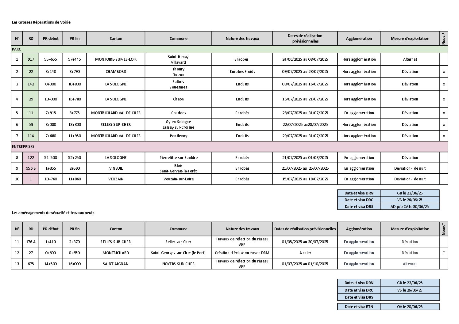 Retrouvez dans ce document la liste des travaux routiers réalisés par le département en ce moment.